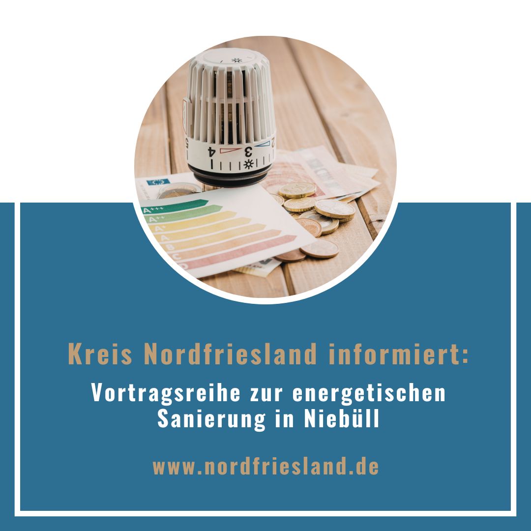 Vom 4. bis 25. März 2026 bietet der Kreis Nordfriesland in Kooperation mit der Verbraucherzentrale Schleswig-Holstein (VZSH) die Vortragsreihe „Energetische Sanierung“ an. Erfahrene Referenten der VZSH informieren an vier Abenden in den Räumlichkeiten der Amtsverwaltung Südtondern (Marktstraße 12) in Niebüll über energetische Sanierungsmöglichkeiten für das Eigenheim – praxisnah sowie produktneutral – und beantworten dabei Fragen der Teilnehmenden.