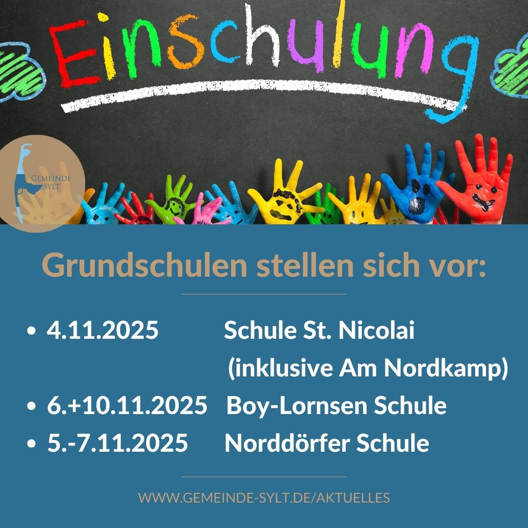 Anlässlich der Einschulungen der Kinder im kommenden Schuljahr 2026/2027 stellen sich die Grundschulen auf der Insel Sylt den Eltern mit den folgenden Veranstaltungen persönlich vor.