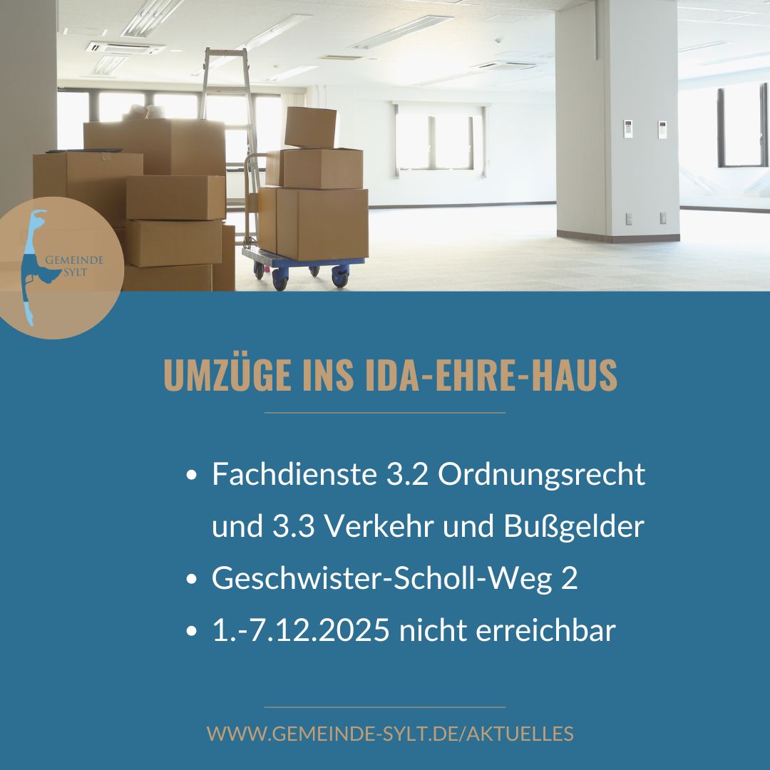 Die Inselverwaltung Sylt bittet um Verständnis für die kurze Umzugspause und freut sich darauf, ab dem 8. Dezember mit frischem Elan am neuen Standort wieder für alle Anliegen da zu sein.