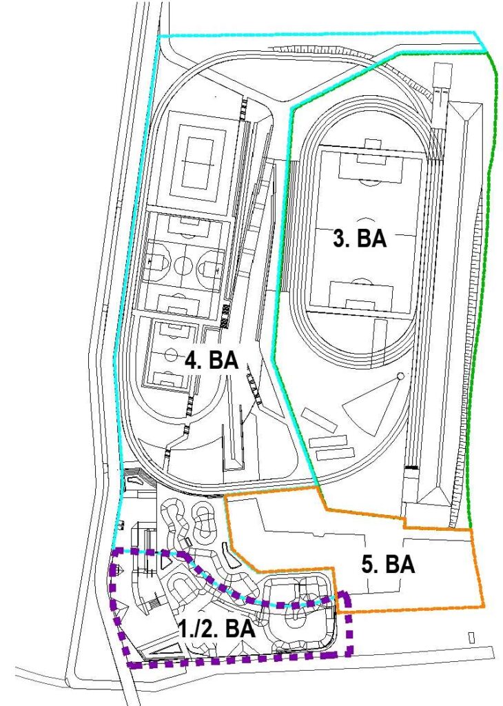 Der 3. Bauabschnitt umfasst den Neubau der Leichtathletikanlagen mit Ausnahme der 400m-Laufbahn, des Naturrasen-Spielfeldes sowie der angrenzenden Lärmschutzanlagen.